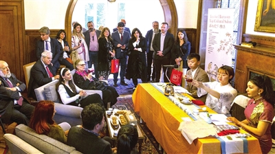 图为人们在希腊雅典观看茶艺表演。 新华社发