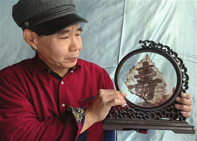 刘学会告诉记者,这些年来他积极宣传和推广叶雕艺术,先后走进20多所高校、中小学开展叶雕知识讲座。节假日,他还会积极参与非遗市集、民俗文化展览等活动,现场展示并邀请游客上手体验,让更多人体验到传统文化的魅力。刘学会爱好叶雕10余载,精雕细琢赋予树叶新的姿态。“传统技艺也要不断有新突破,才能吸引年轻人。现在的图不拘泥于过去的老样子,只要顾客提出来想法,我会进行设计,对方认可了,我再开始雕刻。动漫卡通、人物肖像特别纪念等,都可以量身定制。”刘学会说道。