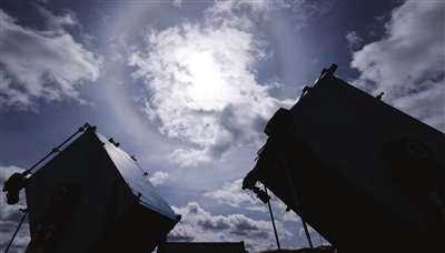 4月22日,高海拔宇宙线观测站观测基地广角切伦科夫望远镜上空出现日晕。 新华社发