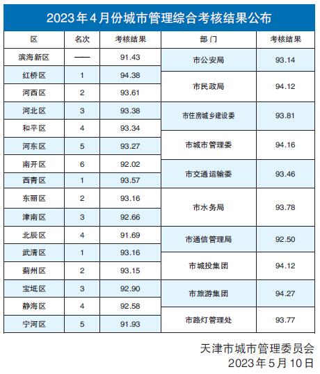 2023年4月份城市管理综合考核结果公布