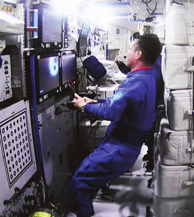 5月11日在北京航天飞行控制中心拍摄的天舟六号货运飞船与空间站组合体完成交会对接后天和核心舱内的画面。 新华社发