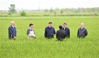 11日上午,习近平来到沧州市,考察了黄骅市旧城镇仙庄片区旱碱地麦田,了解盐碱地整治、旱碱麦种植推广及产业化情况。习近平走进麦田,仔细察看小麦长势,并向正在田里劳作的种植户、农技专家询问旱碱麦产量、价格、品质、收益等。习近平指出,开展盐碱地综合利用,是一个战略问题,必须摆上重要位置。要立足我国盐碱地多、开发潜力大的实际,发挥科技创新的关键作用,加大盐碱地改造提升力度,加强适宜盐碱地作物品种开发推广,有效拓展适宜作物播种面积,积极发展深加工,做好盐碱地特色农业这篇大文章。