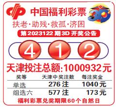 中国福利彩票第2023122期3D开奖公告