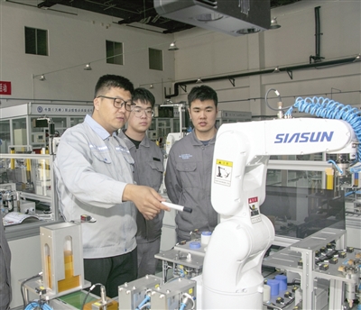 “学了以后干什么,到企业能不能用得上?习近平总书记2013年5月14日来到我们职业技能公共实训中心视察,非常关心技能人才的培养和使用,这为我们的工作指明了方向:产业发展需要什么,我们就培训什么;企业用到什么,学员就考核什么。”摆在王传龙案头的另一份重头任务,就是“工匠涵养班”的教学工作,这已经是他从事“工匠涵养”的第4个年头。“我们在课程中打开了工业机器人、智能制造技术发展的接口,为学员未来自我拓展、技能提升打开通道。同时,加入了生产经营管理模块,为他们将来走向‘技术+管理’岗位做好储备。”