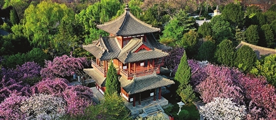 西安青龙寺遗址景区内樱花盛开。新华社发