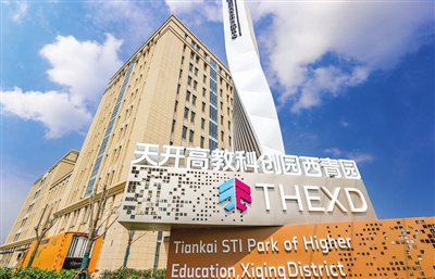 近日,天开高教科创园西青园主雕塑亮相。雕塑总高21米,底座宽7米。