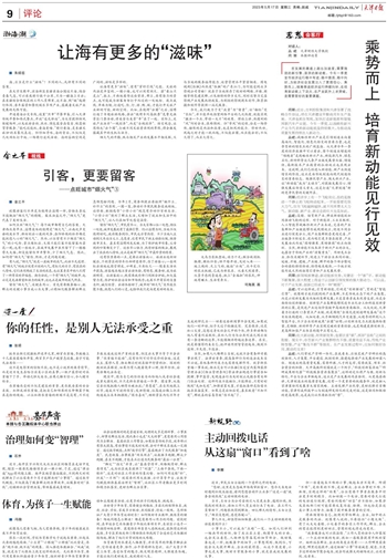 让海有更多“滋味”,需有“穿针引线”之能。文旅的内涵是丰富的,一栋小楼,也可以别有洞天。若“看山只是山”,孤立、片面地看待这些资源,那么,再有潜力的景点,也可能成为游客匆匆打卡而过的一处地标。连点成线、串珠为链,打通吃、住、行、游、购、娱,才能打开文旅产业新的可能、新的空间。比如,在烧烤“出圈”之后,淄博打造了专题旅游线路,推出“烧烤专列高铁票”免费兑换景区门票活动,将美食与美景“串”在了一起。实际上,文旅产业决非“一域经济”,而是“全域经济”。转变观念,让思维也“出个圈”,打破不同文旅资源间的界限,将会激发蕴藏其中的生机与活力。