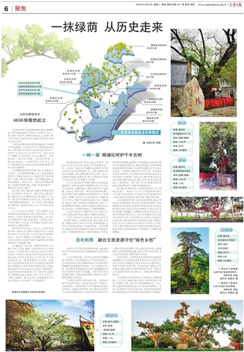 “古树里有故事,故事里有乡愁。在做好古树名木保护的同时,应注重活化利用。”调研中,市政协委员、天津农学院人文学院教授刘洪银对记者表示,他建议因势利导,将古树名木的保护与文旅产业融合衔接,开发出更多以古树名木为主题的生态旅游资源,比如,建设古树公园、古树博物馆、自然科普教育基地,进行文创产品开发等,活化古树名木资源、展现古树名木价值。