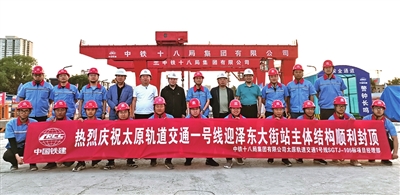 太原轨道交通1号线迎泽东大街站主体结构封顶(图)