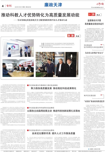 自天开园项目建设伊始,派驻区国资委纪检监察组发挥近距离监督优势,对承担天开园相关项目施工的天津市凯兴房地产开发有限公司进行了“预警式”“跟进式”监督。同时,区纪委监委采用“室组街”联动监督,统筹区纪委监委第一监督检查室、派驻区国资委纪检监察组、学府街道纪检监察工委监督力量,通过查阅资料、组织开展集体廉政谈话、实地检查等多种方式,将监督关口前移,紧盯关键岗位、关键人员以及招投标等关键环节,紧盯政治责任落实、纪律作风表现、廉政风险防范等重点内容,不断完善监督制约机制,将警示教育、廉政教育、纪律教育贯穿项目推进全过程,增强区属国有企业干部廉洁自律意识,筑牢拒腐防变思想防线,以作风建设的新成效引领保障天开园项目建设高质量开展。