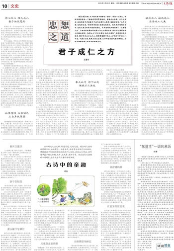 在生活中,我们常常身兼多种身份和角色。在家庭中,我们既是父母也是儿女;在职场中,既是领导也是下属。按照忠恕之道的要求,如何担当起不同的角色呢?《格言联璧》里说:“君子之事上也,必忠以敬,其接下也,必谦以和。”对于上位者,应当“必忠以敬”,就是忠诚恭敬。君子“尽己之谓忠”,把上级领导交给自己的职责、任务尽心竭力、认真负责地完成,竭尽全力做好自己的本分,这就是忠。面对下属,应当“必谦以和”,即君子对待属下非常谦虚,和气待人。下属犯有错误,要有包容宽恕之心,给人以悔过改过的机会,这样才能营造和谐的气氛。因此,宋代晁说之在《晁氏客语》中说,“事上之道莫若忠,待下之道莫若恕”,这既是道德要求,也是修身的方法。