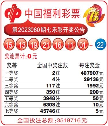 中国福利彩票第2023060期七乐彩开奖公告