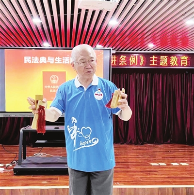 这些自编自演的快板已有150段,内容涉及文明条例、珍惜粮食、公筷公勺、保护野生动物、垃圾分类、谨防电信诈骗等。他还专门围绕《中华人民共和国民法典》编写了90多段以案说法的快板。