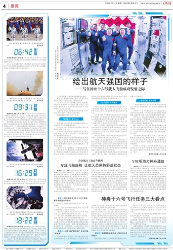 5月30日9时31分,景海鹏、朱杨柱、桂海潮3名航天员,搭乘神舟十六号载人飞船,在长征二号F运载火箭的托举下,从东风航天城点火升空,开启为期约5个月的太空之旅。