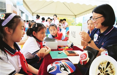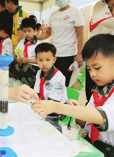 入队仪式结束后,还举办了少先队主题队日活动。来自全市16个区和市少年儿童活动中心的40余个互动体验项目,涵盖了红色教育、科技体验、传统文化等多个主题,吸引着孩子们前来打卡。