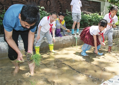 正值插秧季,为了让学生们在劳动实践中体会一粥一饭来之不易的道理,近日,和平区中心小学邀请天津农业大学水稻专家走进校园,指导学生们在校内开辟的“稻蟹共生池”进行插秧。后期同学们会对稻蟹土壤、水质、空气等数据进行收集汇总,通过读取植物生长过程中的动态数据,对农作物的生长情况进行观察记录,在劳动实践中增长见识,领悟道理。