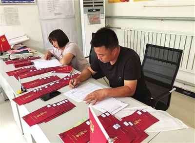 ①焦庄村村干部为村民登记“积分制”手册。