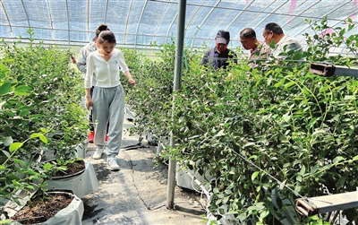 蓝莓种植大棚内,游客熙熙攘攘。王殿东向游客介绍,蓝莓种植基地有120亩左右的蓝莓,囊括了云雀、莱克西在内的10多个品种。“我们最大的优势是采用无土栽培技术进行蓝莓种植,这样可以实现科学管控,告别了‘靠天吃饭’!”王殿东说。