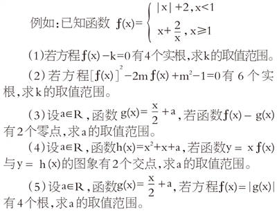 考前每天都要保持一定的练习量,以保持做题的手感和敏感度。习题的选择要少而精,注重综合,强化“新”、强化“变”。以分段函数与函数的零点为问题背景的题目通常作为选择或填空的压轴题,难度大,综合性强。解决的基本思路是,函数的零点个数问题等价转化为相应方程的根的个数问题,而对于不能直接求解方程的问题,往往又可以转化为两个易于作图的函数的图象问题,利用函数图象的交点个数来等价转化与处理。基本思路方法是等价转化、数形结合与分类讨论等。可以通过改变知识融合点,如绝对值函数,函数的零点个数,一元二次方程根的分布以及参数的取值范围等,还可以改变参数的位置、参数的个数、函数的类型和结构、设问方式、结构形式、问题情境等设计一题多变,最终抽象成一般的思维方法,这样以变思不变,练就应对试题陌生情景的有效方法及心理能力。(见上图)
