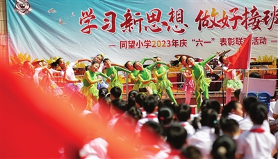 同望小学的同学们欢聚在操场上庆祝“六一”儿童节。