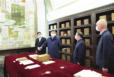 1日下午,习近平乘车来到位于北京市昌平区燕山脚下的中国国家版本馆中央总馆。中国国家版本馆主要承担国家版本资源规划协调、普查征集、典藏展示、研究交流和宣传使用职责,建有中央总馆和西安、杭州、广州分馆。习近平首先走进文华堂,听取版本馆规划建设有关情况介绍,参观国家书房、中华古代文明版本展、中国当代出版精品与特色版本展。在文瀚阁,习近平仔细察看马克思主义中国化时代化经典版本展,不时询问版本搜集整理有关情况,并登上五层露台俯瞰版本馆全貌。随后,习近平来到兰台洞库,参观“汉藏蒙满文大藏经雕版合璧”和“《四库全书》合璧”库展,详细了解馆藏精品版本保存情况。习近平强调,我十分关心中华文明历经沧桑流传下来的这些宝贵的典籍版本。建设中国国家版本馆是我非常关注、亲自批准的项目,初心宗旨是在我们这个历史阶段,把自古以来能收集到的典籍资料收集全、保护好,把世界上唯一没有中断的文明继续传承下去。盛世修文,我们这个时代,国家繁荣、社会平安稳定,有传承民族文化的意愿和能力,要把这件大事办好。我对中国国家版本馆的建成和管理是肯定的、满意的。国家版本馆的主要任务就是收藏,要以收藏为主业,加强历史典籍版本的收集,分级分类保护好。同时,要加强对收藏的研究,以便更好地做好典籍版本收藏工作。在做好主业的前提下,协助各方面做好历史典籍版本的研究和挖掘。总之,建设中国国家版本馆,是文明大国建设的基础工程,是功在当代、利在千秋的标志性文化工程。
