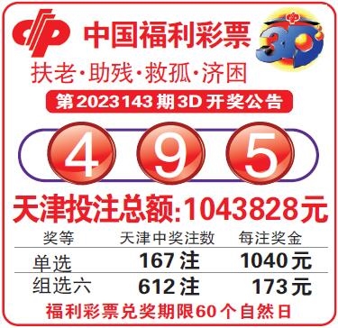 中国福利彩票第2023143期3D开奖公告