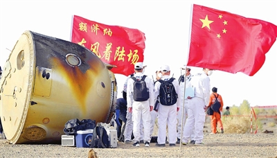 全员出动,全力以赴。等候了一夜的搜救车队,打开全部车灯,全速向着返回舱进发,素白的灯柱随着车辆的颠簸上下起伏。