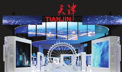 步入天津展区,标志性网红打卡地“天津之眼”摩天轮微缩景观率先映入眼帘。位于展区两侧的高清LED大屏简洁大气,循环播放全网刷屏的《你好天津》《品味天津》城市宣传片。