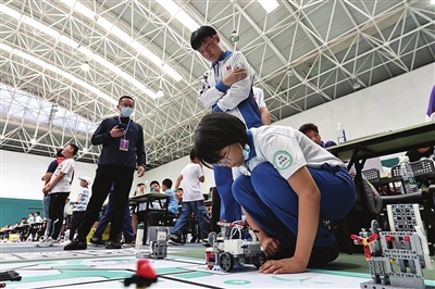 在比赛的任务挑战赛中,学生需要根据任务要求自主设计解决方案,巧妙设计机械结构,编写程序,并研究合作策略等内容。他们不仅需要运用数学、物理、化学、人文和天文等多个学科的知识,还需要具备解决实际问题的能力和创新思维。