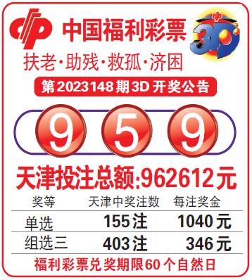 中国福利彩票第2023148期3D开奖公告