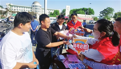 本报讯(记者 苏晓梅 摄影 通讯员 李枚 记者 张磊)高考首日,公交志愿者前往部分考点,开展助力高考志愿服务活动,为考生和家长提供帮助。