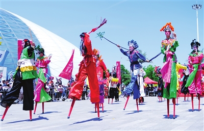 高跷是一种历史悠久的民间表演形式。参与此次活动的队伍,均来自三地的非遗项目,表演各具特色。有的阵容齐整、音乐优美,有的文跷武跷结合,有的进场方式考究具有舞台艺术感觉,还有跟头利落的“小英哥”、倔强扑蝴蝶的“公子”等人物,都让人印象深刻。观众袁先生略带惊讶地说:“以前看高跷都在年节,演员敲敲打打扭一扭,大伙儿看个热闹。这次集中仔细看,才知道高跷表演也是有人物、有情节,感觉很有‘门道’。”