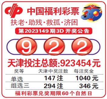 中国福利彩票第2023149期3D开奖公告