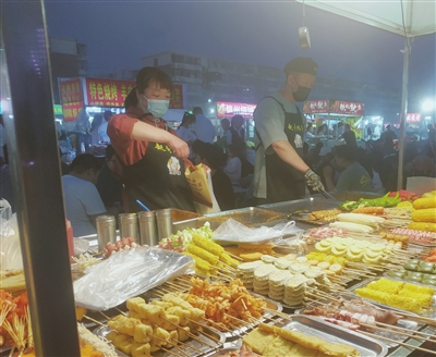 “本着错位经营、品种多元的原则,目前布局了400多个摊位。除了特色小吃,还有游乐项目,顾客来了有吃有玩。从下午五点营业到次日凌晨两点,周末客流量达到上万人。”天山夜市负责人难掩喜悦地告诉记者,夜市开业一个多月来,进场摊位已经“一位难求”。