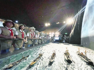 “展厅里展示了考古成果,还原了甲午海战的场景,在这里讲课,孩子们能更直观、更立体感受考古与历史的魅力。”给孩子们讲水下考古课,张瑞可谓驾轻就熟,但置身国家海洋博物馆,在众多还原历史的场景中讲课,对他来说还是第一次。