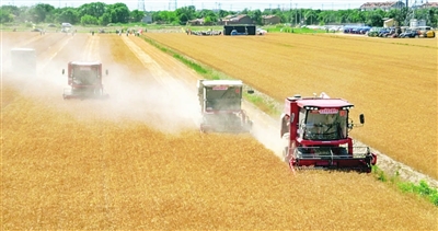阳光下的麦穗饱满飘香,一台台收割机来回穿梭,将金黄色的麦粒收入囊中,金灿灿的麦田里“丰”景如画。今年,滨海新区小麦播种面积达12.14万亩,从大港地区开始由南向北展开小麦机收,预计6月20日全部收完。据了解,为确保“三夏”工作圆满完成,滨海新区不断完善应急预案,及时对抢收、抢种、农机调度、安全生产、秸秆处理进行部署,投入小麦联合收割机、打捆机、播种机等农业机械900余台套,安排运输车辆240余部,确保小麦应收尽收、颗粒归仓。