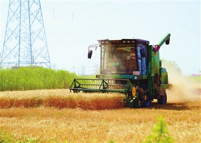 图为东丽区华明街范庄经济合作社种植户种植的小麦喜获丰收。
