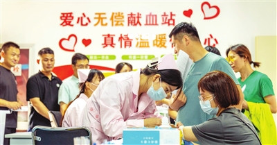 图为市民在安徽省合肥市肥东县血站无偿献血室进行献血前检验。