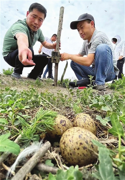 七里海管理人员和天津师范大学野生动物资源保护研究团队在鹿岛上安装红外监测相机。