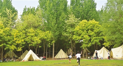 搭帐篷、划小船,在北辰郊野公园赏景游玩,贴近自然。