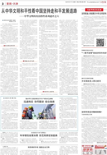 中华民族的昨天和前天,决定了中华民族的今天和明天。中华文明突出的和平性,从根本上决定了中国始终是世界和平的建设者、全球发展的贡献者、国际秩序的维护者。