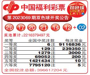 中国福利彩票第2023069期双色球开奖公告
