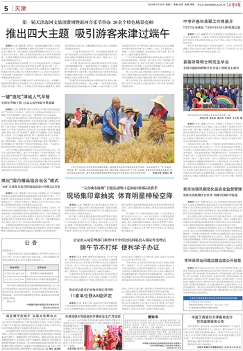 “五市集”是举办系列主题市集:津诚资本举办棉3“NOIRE微醺市集”。城投集团推出“动漫端午 礼遇津湾”主题市集。旅游集团与城投集团合作开办“天津礼物 粽情仲夏”主题市集。旅游集团在康宁津园养老社区打造康宁夏荷市集,与市政集团、食品集团联合推出梅江南城市主题文化餐饮市集。