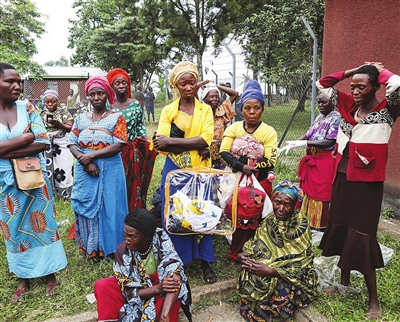 图为6月18日,遇难者家属在乌干达西部小镇姆蓬德韦一所医院的太平间外等候。 新华社发