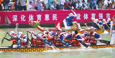 自1988年起,延续举办35年的海河国际龙舟赛是国家级体育旅游精品赛事,也是全国精品赛事中唯一入选的龙舟项目。在今年的比赛中,96名外籍选手来自美国、英国、法国、德国、西班牙、阿根廷、新西兰、澳大利亚、日本等国家,涵盖了包括空客、大众等世界五百强驻津企业。
