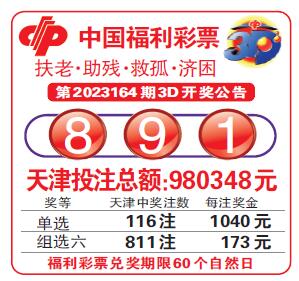 中国福利彩票第2023164期3D开奖公告
