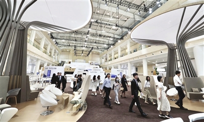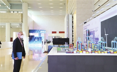 记者走访发现,场馆中的天津元素十分丰富,二层大厅中特别设置了天津艺术展示区和天津科技展示区,天津港智慧零碳码头、天开高教科创园相关科技成果以及众多天津文化作品纷纷亮相。