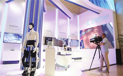 科技展示区中的LED显示屏面板串联起整个展区,充满律动和科技感。在这里,观众能了解到先进电池材料与技术、全球首款人工神经康复机器人系统、PLNP等离子纳米抛光技术等前沿科技,并观看生活适应情景交互训练系统等相关产品的现场演示,近距离了解科技为人们的生活带来便利。