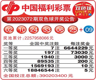 中国福利彩票第2023072期双色球开奖公告