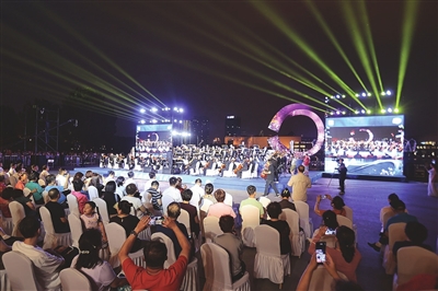 本场音乐会在天津文化中心湖畔露天举办,佳音与美景相伴。音乐会结束后,天津文化中心音乐喷泉开启,给观众带来一个难忘的津城艺术之夜。本场音乐会指挥、天津交响乐团团长董俊杰表示,天交通过音乐语言为来自世界各地的朋友展示天津文艺的繁荣发展。